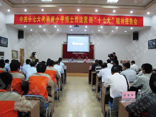 11月14日下午,阳光灿烂,秋风送爽,在喜庆的锣鼓和欢声笑语中,座落于广州市天河区珠吉街的广州市雷竞技网页版登录设备制造有限公司迎来了党的十七大代表唐小平博士。唐小平代表面对国研公司党支部全体党员和公司全体员工,作了一场丰富详实、精彩生动的报告。珠吉街党工委、办事处领导班子成员、街属各支部书记、以及天河区委组织部、区委宣传部的有关负责同志应邀出席了报告会。
