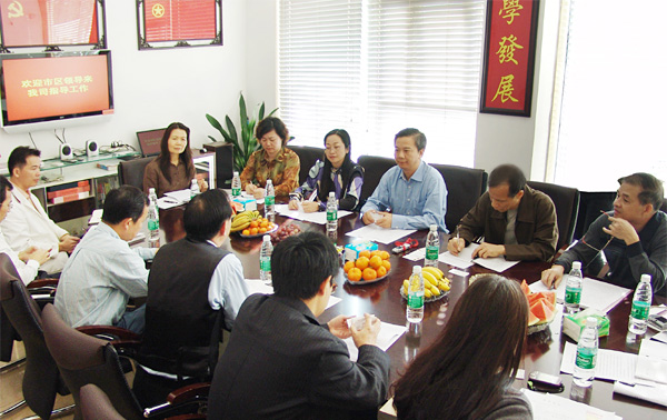 广州市非公经济组织创先争优活动指导小组在雷竞技网页版登录公司调研(中为广州市工商局副局长周邦华)