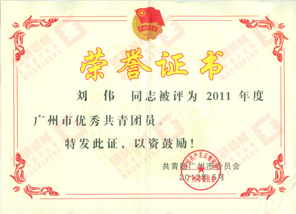 2012年6月,雷竞技网页版登录公司刘伟同志被共青团广州市委员会评为“2011年度广州市优秀共青团员”。